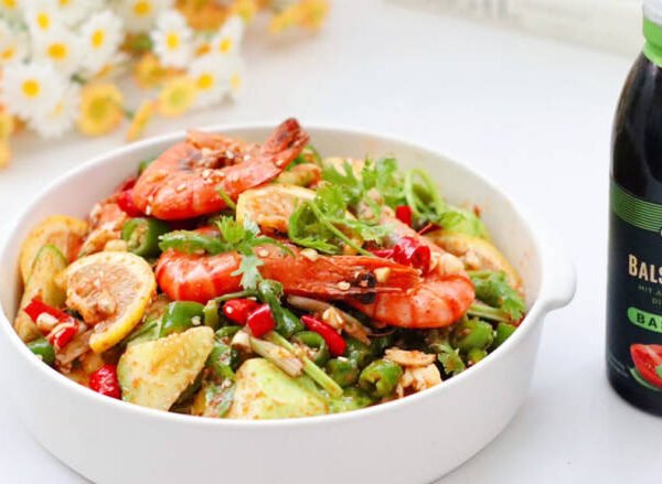 Соберите все необходимые продукты: креветки, огурец, лимон, острые перцы, чеснок, кориандр, лук, имбирь и другие ингредиенты. -